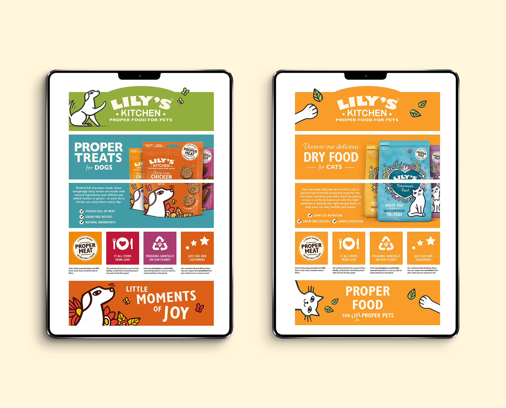 Outdoor, website, email and social for leading UK pet food brand Lily's Kitchen. Design / Web / Social